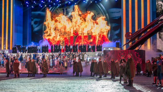 - В 19:00 пройдёт минута молчания, а после 20:30 будут исполнятся песни звёздами эстрады. Вход на концерт свободный.